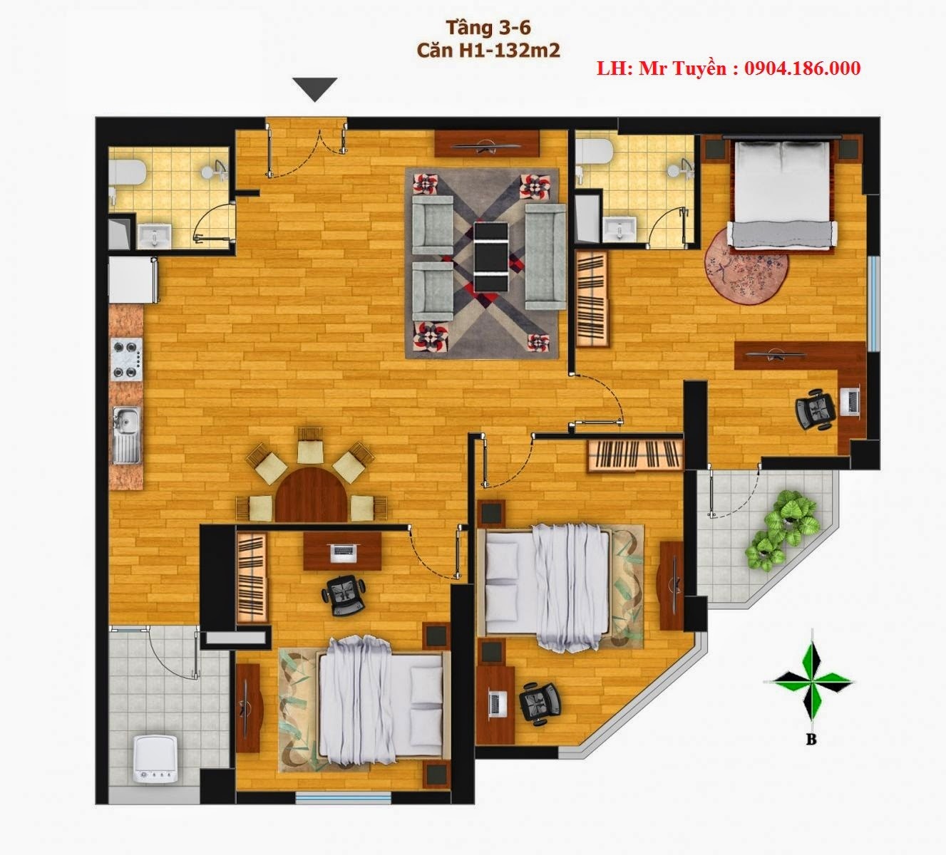 tích sàn Căn hộ: …..m2 là diện tích tính theo thiết kế.